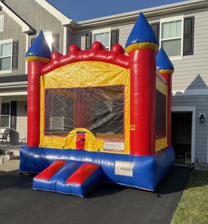Introducing our Castle Bounce House II that will bring an exciting and royal touch to any party or event! Measuring 13 x 13 x 15, this bounce house provides ample room for kids to jump around and have fun. The castle design features turrets, flags, and castle walls to create an immersive and magical experience. The inflatable ramp at the front entrance ensures a safe and easy entry and exit for all children. The Castle Bounce House II is made with high-quality, durable materials to ensure that it withstands frequent use and the elements. This bounce house is perfect for any occasion, from birthdays to block parties, and will provide hours of laughter and entertainment for children. So why not add a touch of royalty to your event with our Castle Bounce House II?